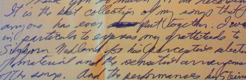 “I wish in particular to express my gratitude to Sigbjorn Nedland for his perceptive selection of material and the sensitive arrangements of the songs.”