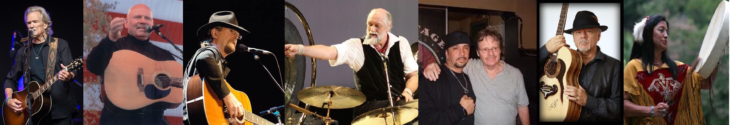 From left: Kris Kristofferson, Barry McGuire. Roger McGuinn, Mick Fleetwood, Capital X & Delbert McClinton, John Beland, Yolanda Martinez