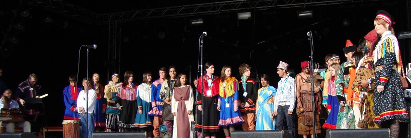 At the workshop, together with musicians from Guatemala, they were music instructors for youth participants who came from various parts of Russia, Mongolia, Greenland and Northern Scandinavia. Together they worked for a week to get to know each other’s music, dance and traditions. Traditional taarab melodies from Zanzibar blended with Sami joiks, throat singing from Tuva, rhythms and melodies of Guatemalan indigenous tribes – all performed in very different singing styles and voices, and played on formely unkonown combinations of instruments, from oud and qanun to jugs, flutes, deep sea conches, frame drums made with reindeer skin and various shakers. Then dances from all the different areas, traditional dresses, body painting, headbands and braids, necklaces and charms added other flavours to the artistic expression. The different groups and nationalities were teaching each other, learning from each other, and worked together with the aim of putting it all together in a colourful performance at the main stage of the festival.