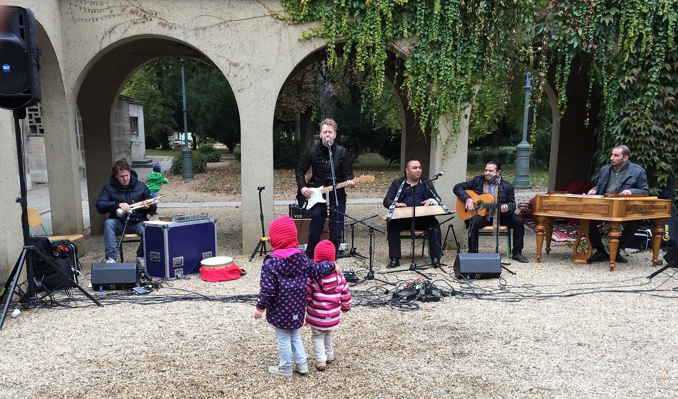 The musicians met in Budapest some days before the festival, and started working on a selection of Rom and Sami music, which they molded into concert numbers that integrated both traditions in the same musical pieces, including both typical Rom singing styles, Sami joik, traditional guitar styles and cimbalom, as well as electronics and electric guitars. Concerts were held at two locations: One at the MÜPA Conference center, for an audience of Festival participants, and one at a stage put up at a Farmer’s Market in a Budapest suburb, where the Rom/Sami music blended in with stalls selling groceries, traditional arts and crafts, and specialist farm products. Performances for two very different types of audiences indeed, and two exciting and memorable concert experiences for the musicians.