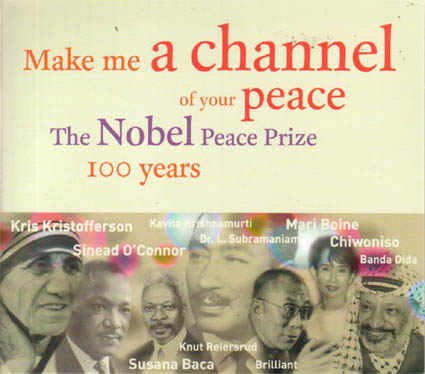 A selection of international artists and musicians from Europe, North and South America, Africa and Asia, exerpts from the speeches of numerous Nobel Peace Prize laureates, hypnotic drumming, creative arrangements, great instrumentalists, beautiful voices, and a shared commitment to the ideals of the Nobel Peace Prize – That is the the content of the CD “Make Me A Channel Of Your Peace”, celebrating 100 years of the Nobel Peace Prize in 2001.