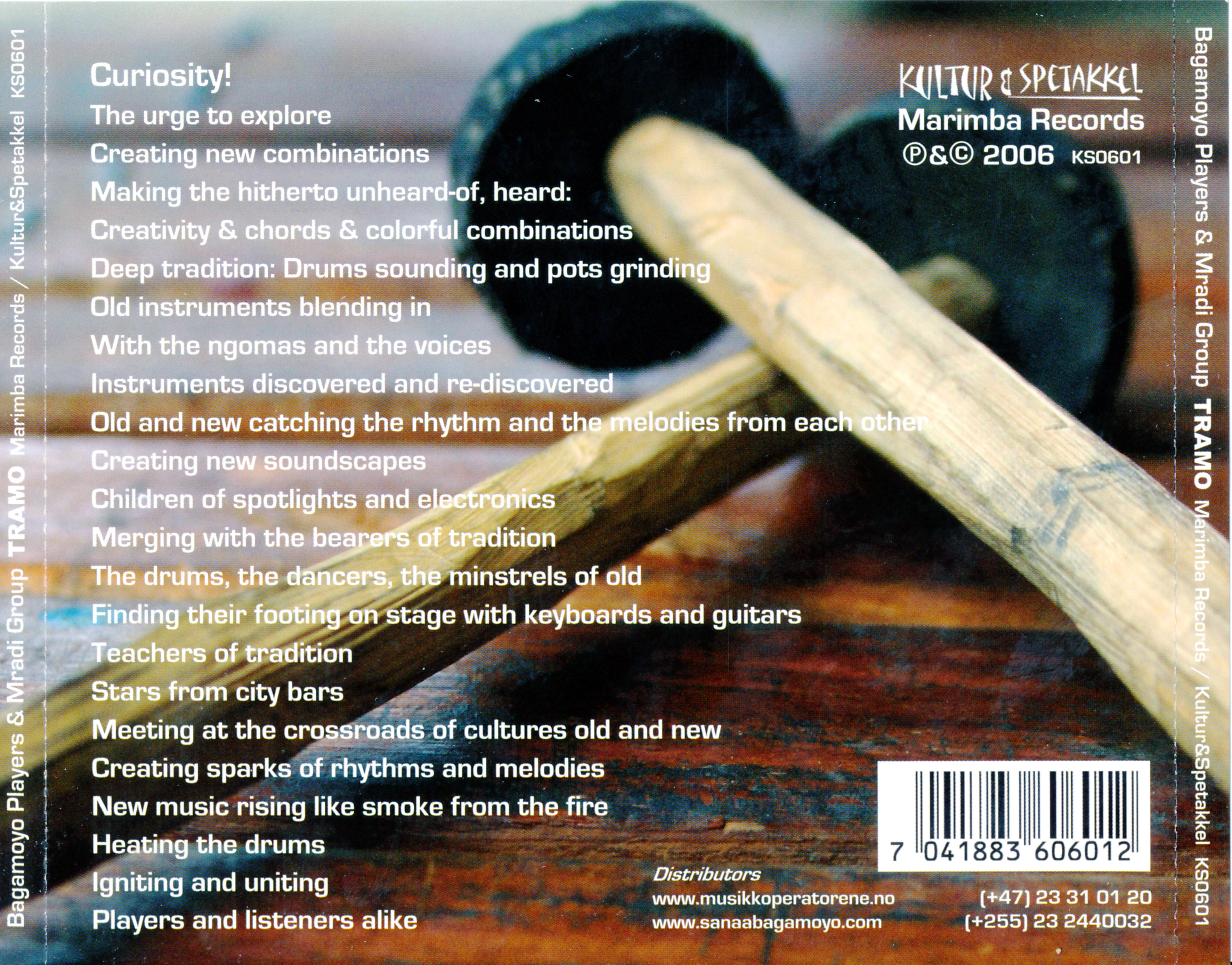 After developing a repertoire of music with inputs from all participants, combining traditional tunes and new compsitions, the natural next step was to move from Bagamoyo to Marimba Studio in Dar Es Salaam. Here Didrik Ingvaldsen from NOTA and Sigbjørn Nedland from Nedland Kultur co-produced an album of innovative music.