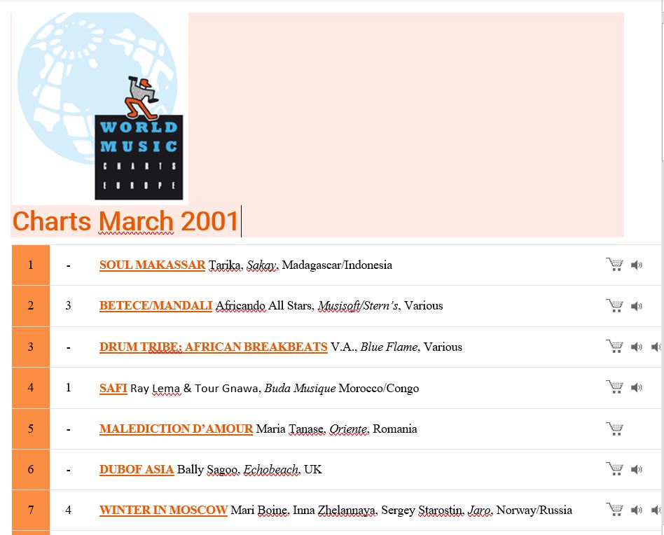 When the album was re-released in 2001 with the name “Winter in Moscow”, it had an international release by the very highly respected German record company Jaro Medien. That led to more exposure, and it entered the World Music Charts Europe at number seven in March 2001.