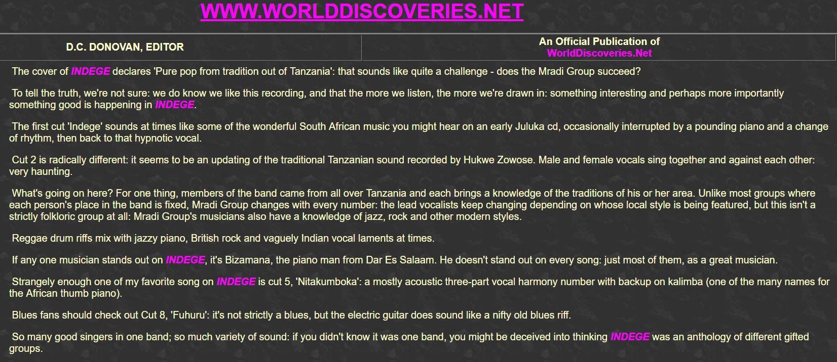 The CD by Mradi Group got some nice reviews.
