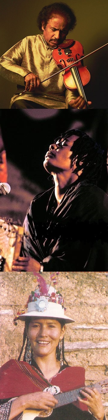 From top left: Dr. L. Subramaniam (India), Stella Chiweshe (Zimbabwe) and Luzmila Carpio (Bolivia) —- Above, from left: Najava (Madagascar), Kálman Bálogh (Romania) and Katalin Szvorák (Slovakia). —- Below from left: Abdulrahman Surizehi (Balochistan/Norway), Sohrab Faqir (Pakistan) and Javid Afsari Rad (Iran/Norway