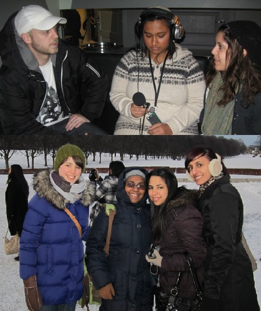 Left top: Two of the participants interviewing a Norwegian reggae artist.