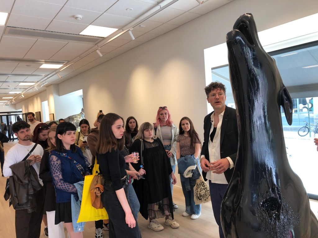 The Romanians who came to Norway were visiting several cultural institutions, schools, universities and performance centers, as well as meeting festival organisers, street art activists and many other representatives of Norwegian cultural life, including politicians and cultural bureaucrats. They visited the arts and music departments of the University of Agder, the Performanc center Kilden, the Kristiansand Art Silo projects and many more. The picture on the right shows the visual arts group being guided by the artist Erik Pirolt through his exhibition at Gallery Bi-Z in Kristiansand, Norway. The two first visits were by the young participants of Tinere Talente/Young Talents, while the third visit to Norway was by representatives of the Margareta of Romania Royal Foundations, for meetings summing up the Norway part of the project, and planning ahead for Nedland Kultur’s return visit to Bucuresti, and the activities there.